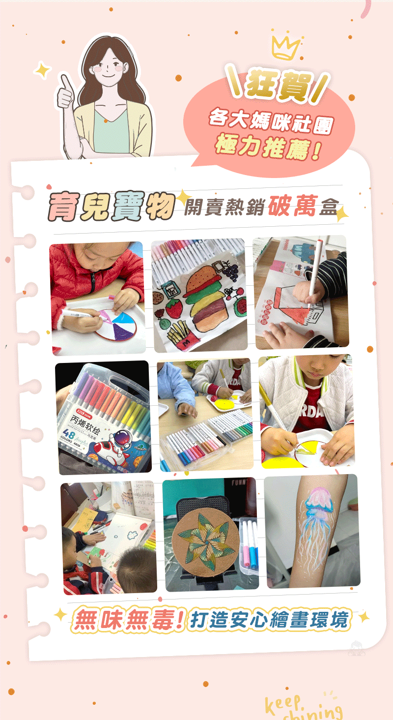 5分鐘前丙烯彩繪馬克筆 超強覆蓋力,萬物材質皆可畫,專為兒童研發,輕鬆擦拭不卡色 - 【兩套】丙烯彩繪馬克筆 (48色)NT$880
