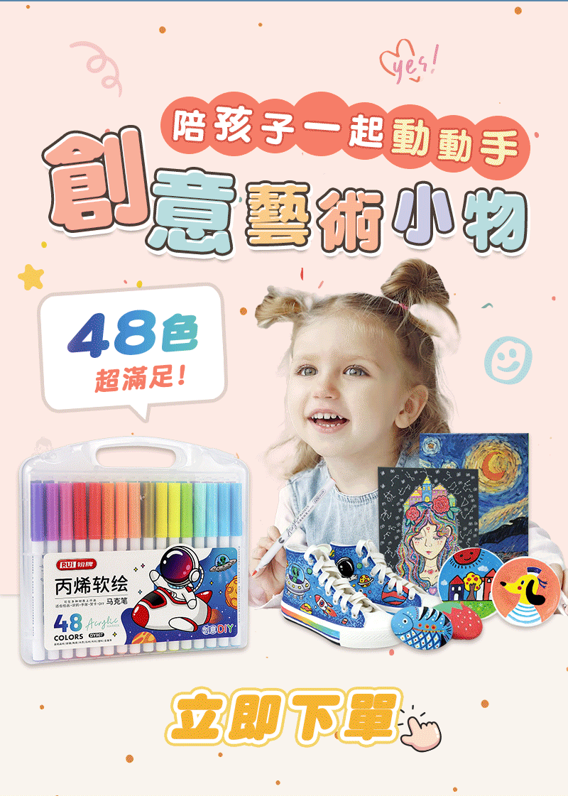 20分鐘前丙烯彩繪馬克筆 超強覆蓋力,萬物材質皆可畫,專為兒童研發,輕鬆擦拭不卡色 - 【一套】丙烯彩繪馬克筆 (48色)NT$580