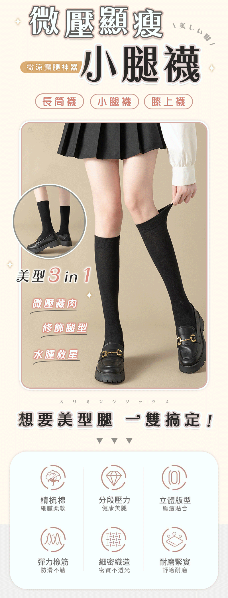 4分鐘前微壓顯瘦小腿襪 - 買一送二/ 再送免運 NT$499