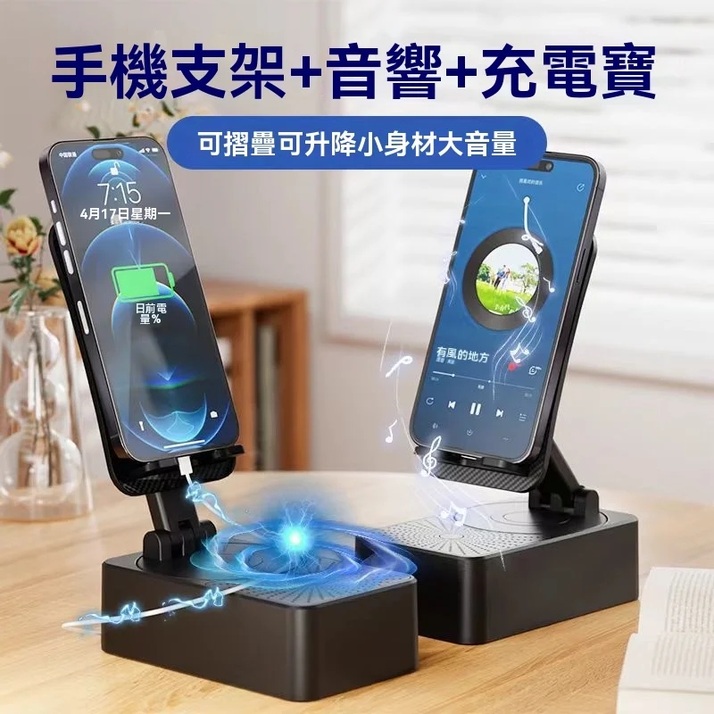 5分鐘前一機多用超省心懶人福音 三合一旋轉手機支架+快充行動電源+藍牙音響隨身多功能數碼神器 - 限時搶購【功能數碼神器 均價466】3入組-NT$1398
