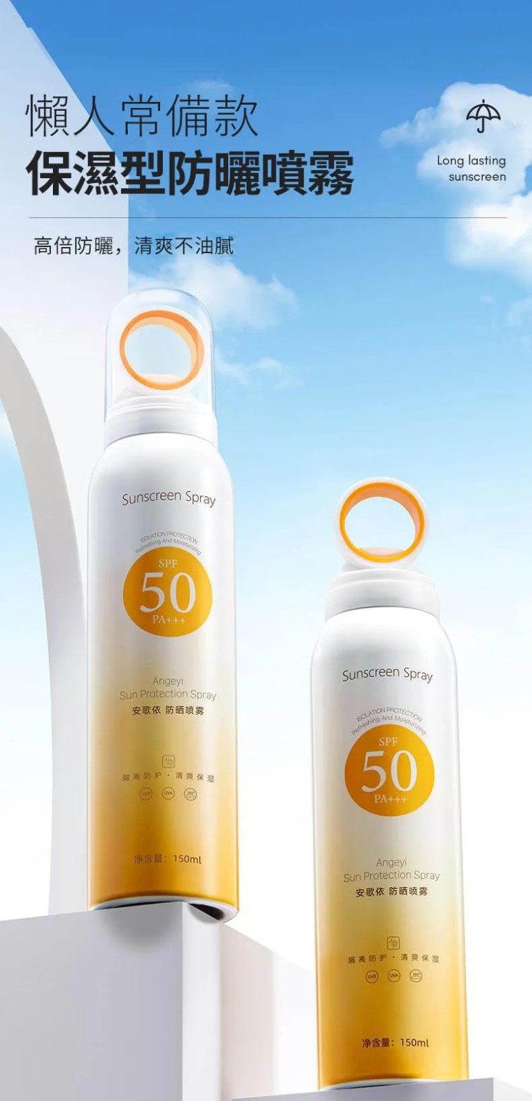 5分鐘前安歌依光圈防曬噴霧,細密噴頭設計 噴頭360°可旋轉自然膚惑,隔離防曬一瓶搞定 - 限時搶購「安歌依光圈防曬噴霧」2入78%用戶的選擇!NT$998【限時免運】