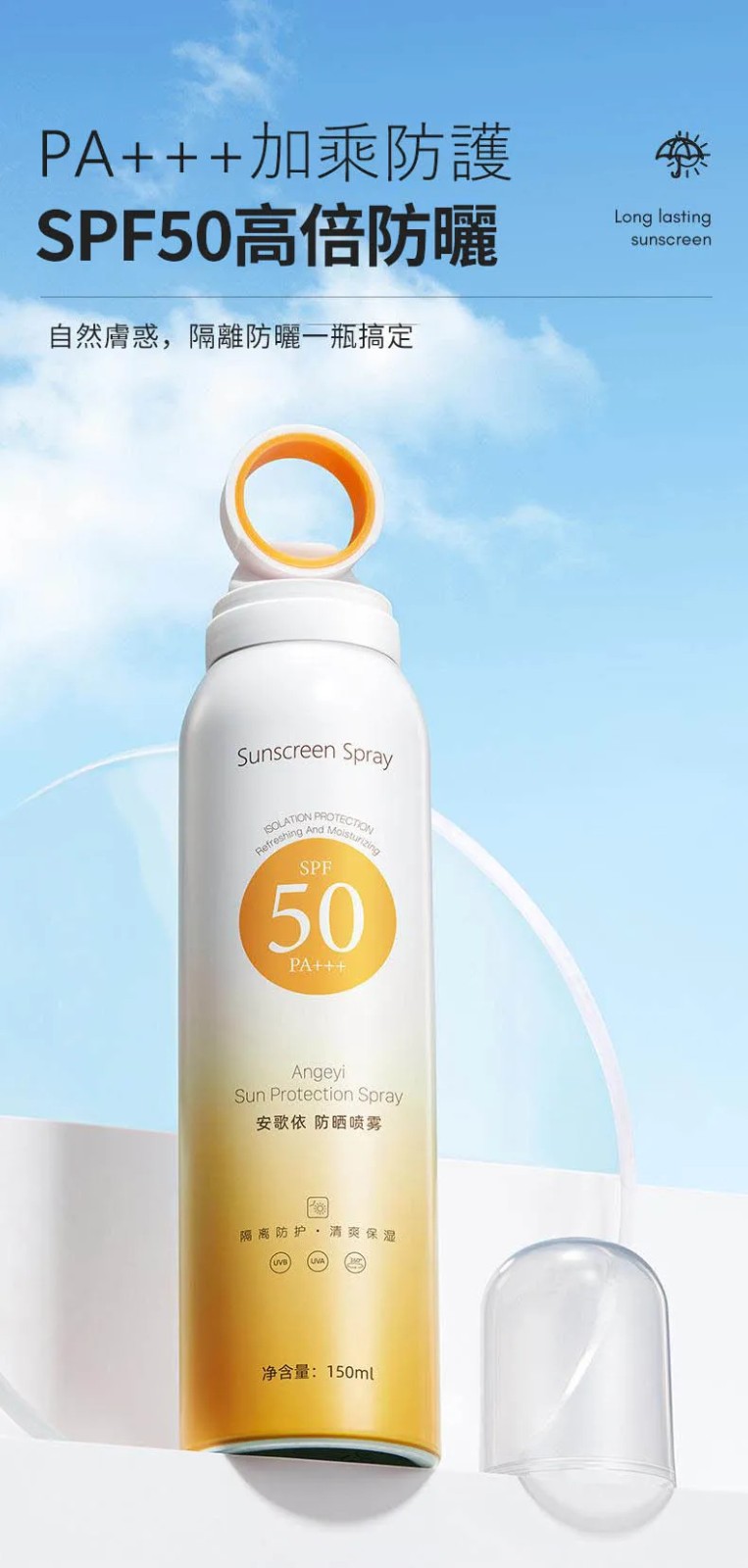 2分鐘前安歌依光圈防曬噴霧,細密噴頭設計 噴頭360°可旋轉自然膚惑,隔離防曬一瓶搞定 - 僅此一天「安歌依光圈防曬噴霧」8入72%用戶的選擇!NT$1598【限時免運】
